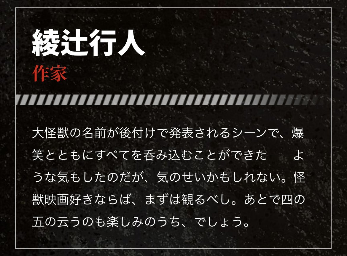 件の大怪獣映画の京極夏彦氏のコメントがパンチ効きすぎで、