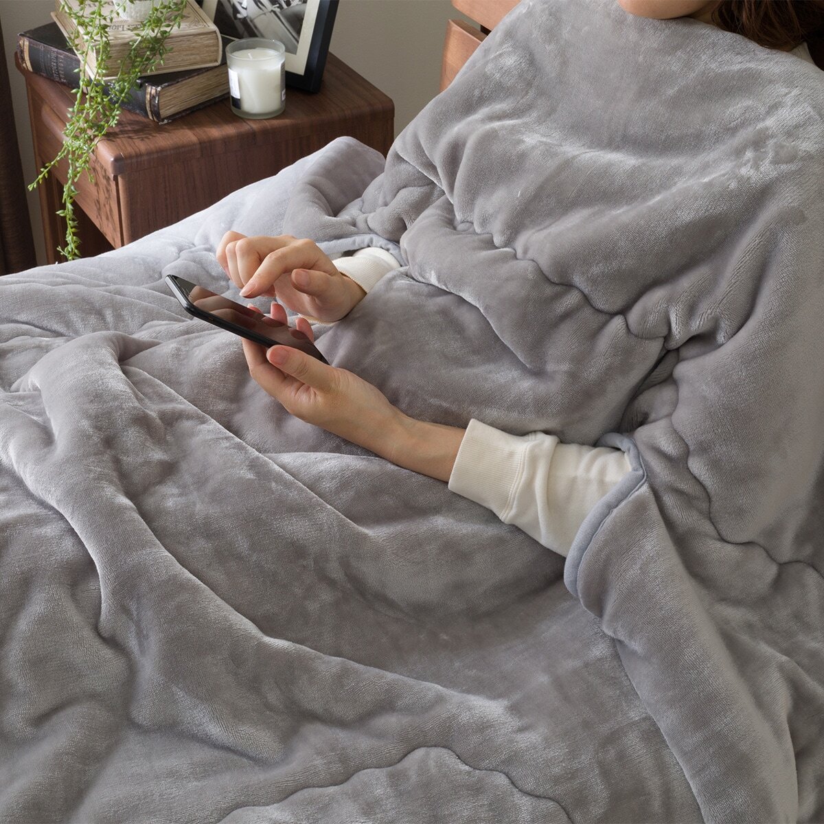 ていうか、袖付きの毛布持ってる。
